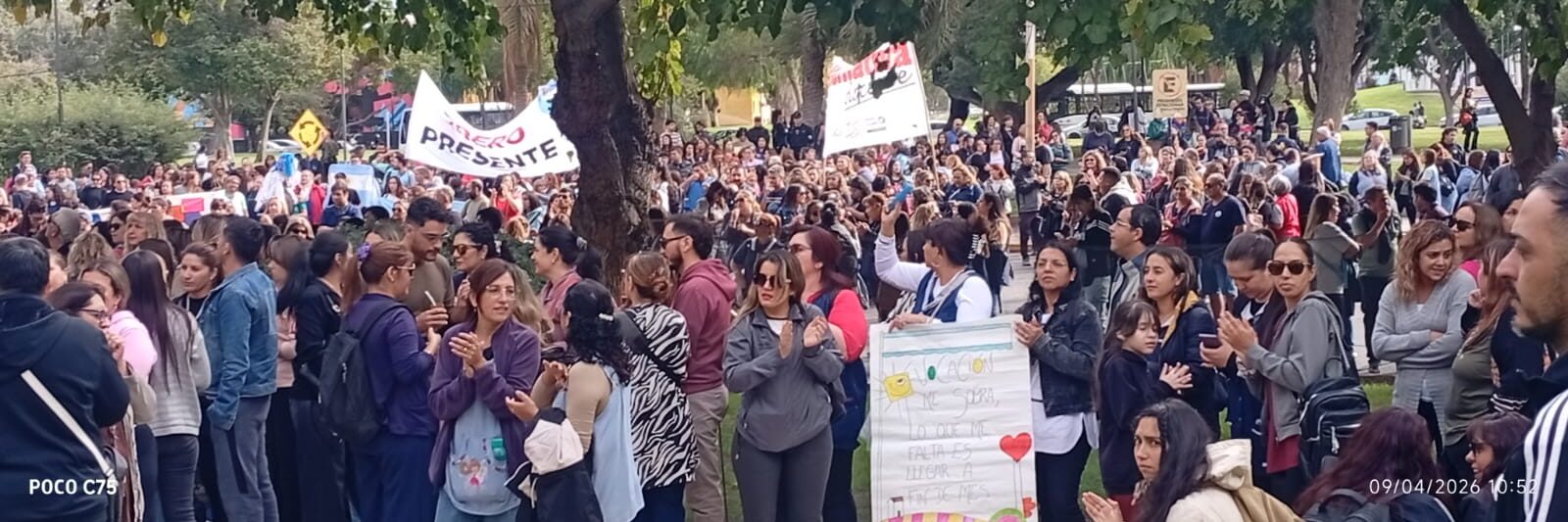Los gremios UDAP, UDA y AMET llevaron adelante medidas de fuerza con alto nivel de adhesión, incluyendo paro y movilización hacia el Centro Cívico. El reclamo central apunta a un “sueldo digno”, denunciando la presencia de sumas no remunerativas (en negro) y el achatamiento de la escala salarial, lo que impacta en la carrera docente y en los haberes jubilatorios.